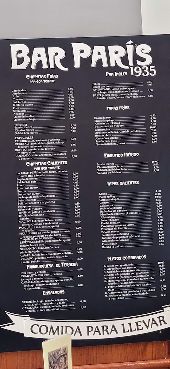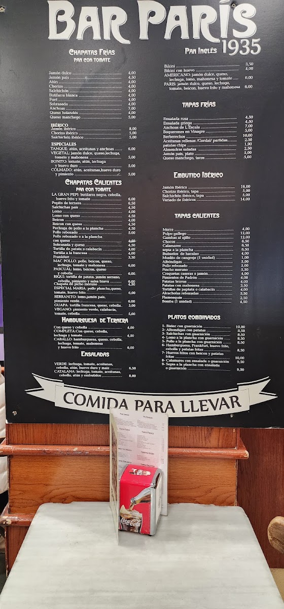 The menu at Bar Paris offers a straightforward yet satisfying selection of classic Spanish bar fare, designed to complement its relaxed and welcoming atmosphere. Think of simple, comforting bites and casual drinks that invite lingering conversations both indoors and on the inviting outdoor terrace.